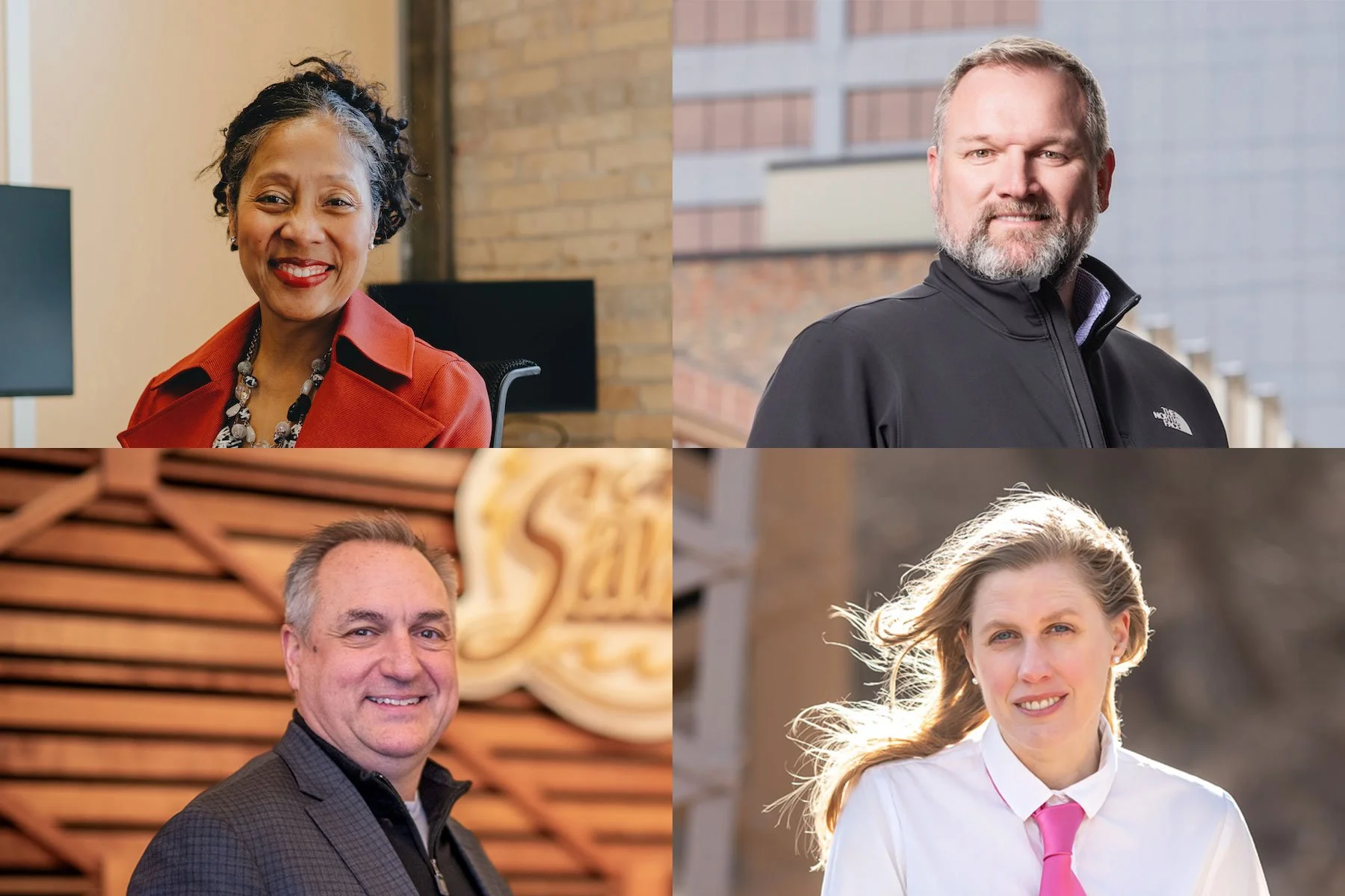 Clockwise from top left: Alicia Belton, FAIA, NOMA, Aaron Kelly, AIA, Alissa D. Luepke Pier, AIA, and Matt Johnson, AIA. Photo credits below.